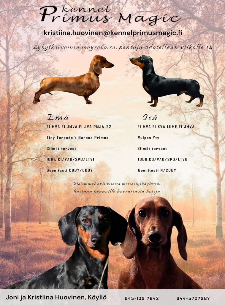 Yhteydenotot sähköpostilla kristiina.huovinen@kennelprimusmagic.fi